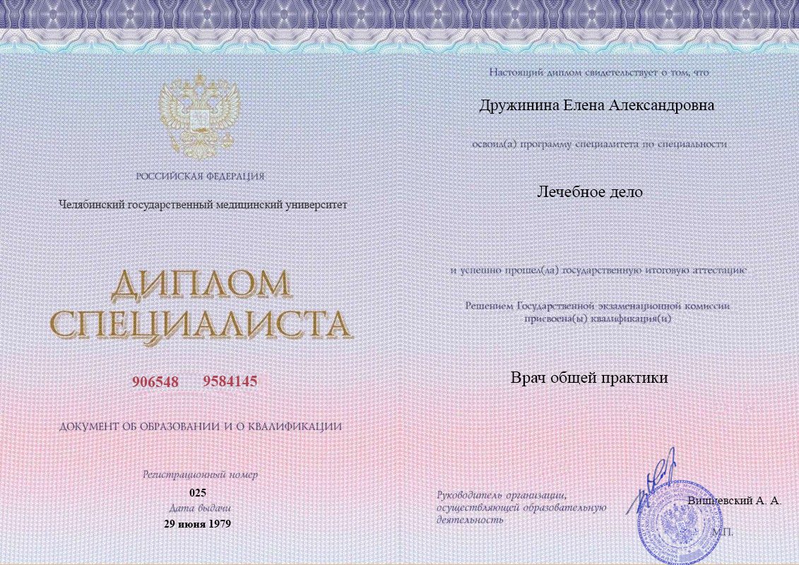 ВУЗ: Челябинский государственный медицинский университет, 1979 г.
